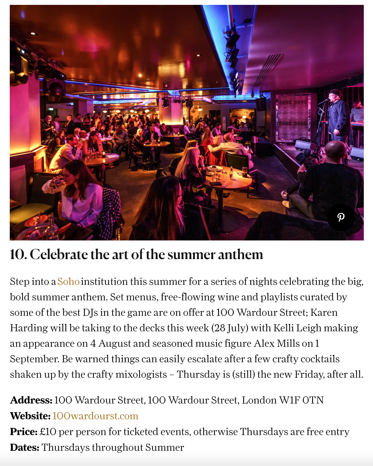 Condé Nast traveler recently featured 100 Wardour St in their article “Things to do in London this week end: 25 – 31 July ” read more here.